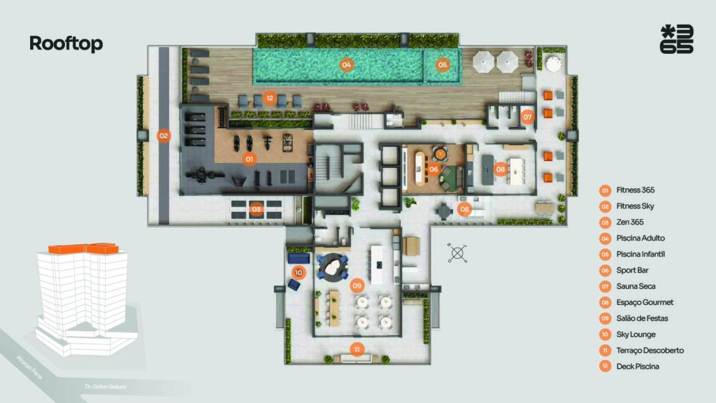 Fitness 365 – Fitness Sky Zen 365 – Piscina Adulto Piscina Infantil -Sport Bar Sauna Seca – Espaço Gourmet Salão de Festas – Sky Lounge Terraço Descoberto – Deck Piscina